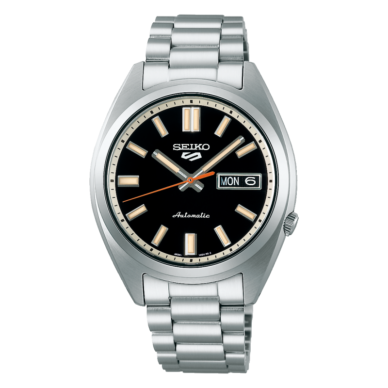 O primeiro relógio Seiko 5, o Seiko Sportmatic 5, nasceu em 1963. Foi o primeiro relógio automático com cronômetro da Seiko e do Japão. O numeral '5' representa a promessa de que cada relógio Seiko 5 teria cinco atributos principais. Movimento automático, mostrador com indicação de dia e data na posição de 3 horas, resistência à água, coroa rebaixada na posição de 4 horas e pulseira projetada para durabilidade.